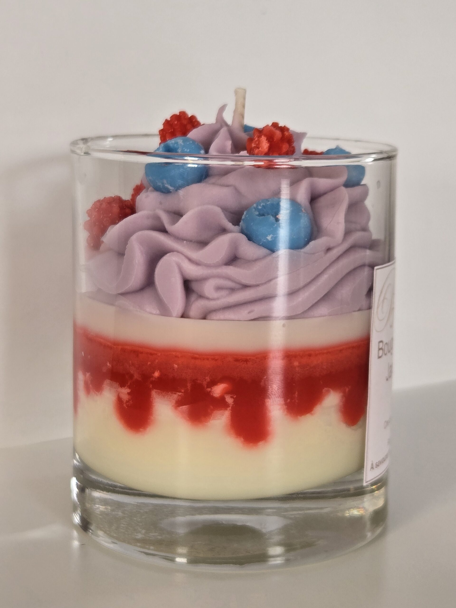 Our Jardin Fruité candle, handmade in an elegant glass jar, diffuses a delicious scent of berries.